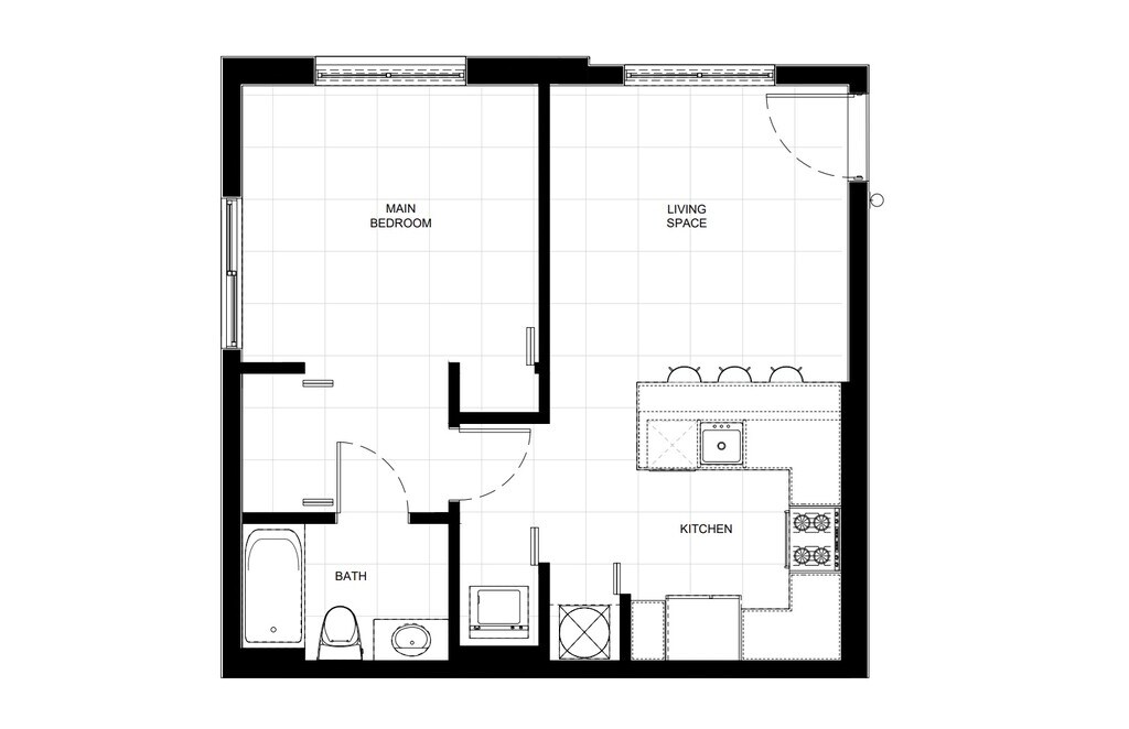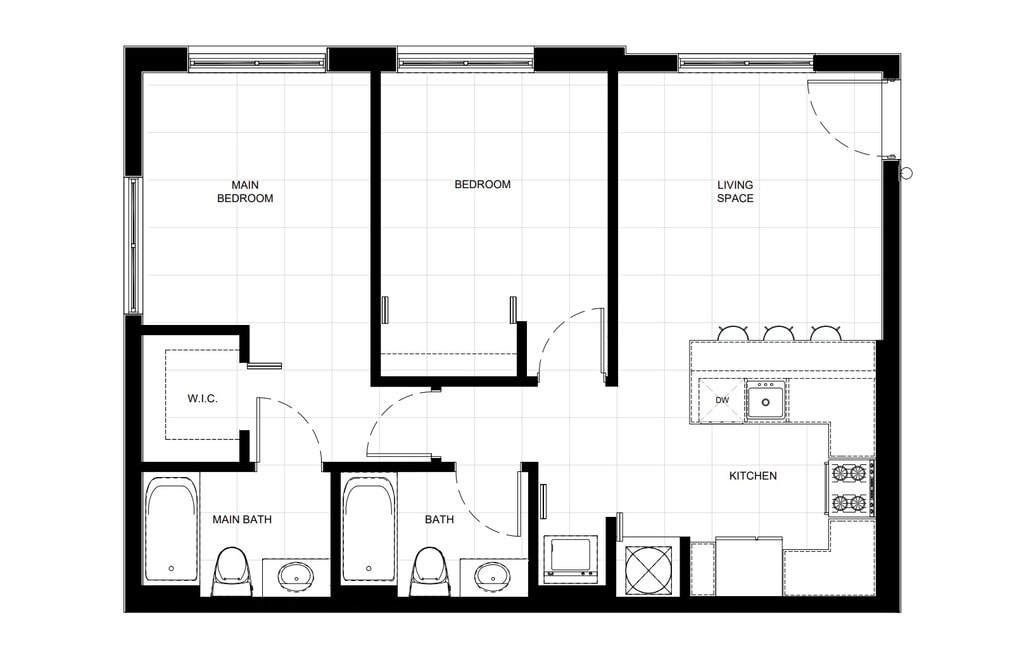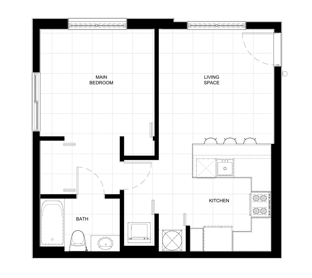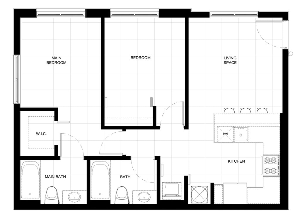 Modelo de apartamento: The Ecco 1Desde $2,0001 Dormitorio, 1 Baño, 615-640 sq ftDisponible October 6, 2025The Ecco 1 - Plano 1 2 Dormitorios