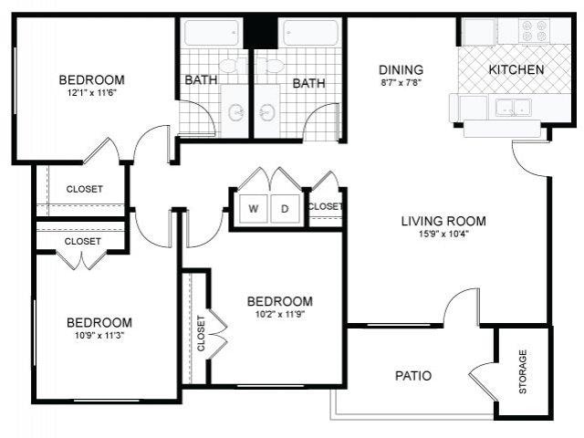 Modelo de apartamento: CarriageLlame para Precios1 Dormitorio, 1 Baño, 671 sq ftNo Disponible![]()