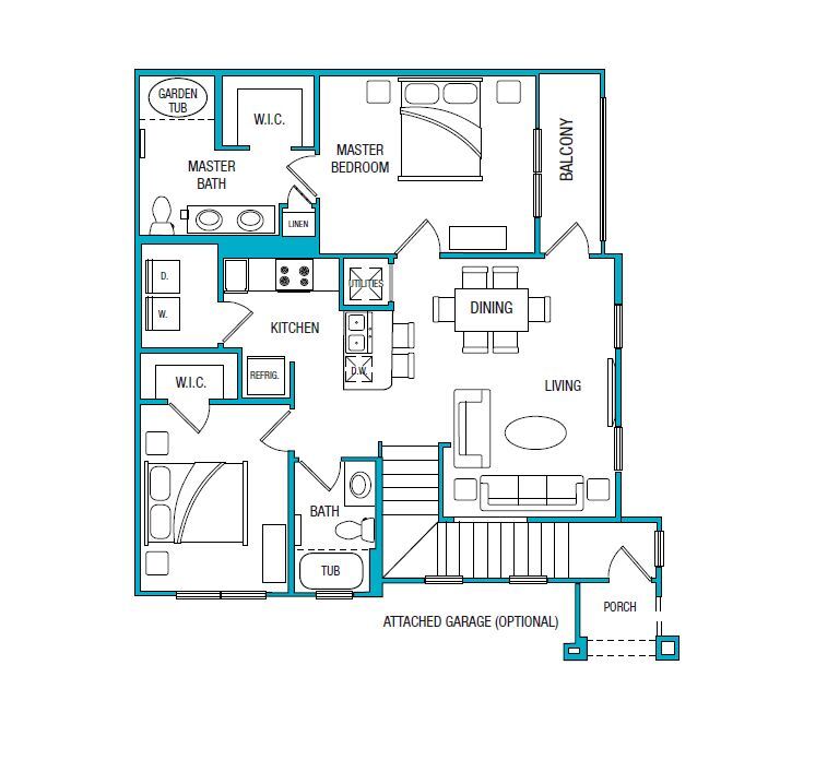A1 - Plano 2 Los planos son representaciones artísticas. Todas las dimensiones son aproximadas. El producto y las especificaciones reales pueden variar en tamaño o detalle. No todas las características están disponibles en cada vivienda en alquiler. Por favor, consulta con un representante para obtener más detalles.