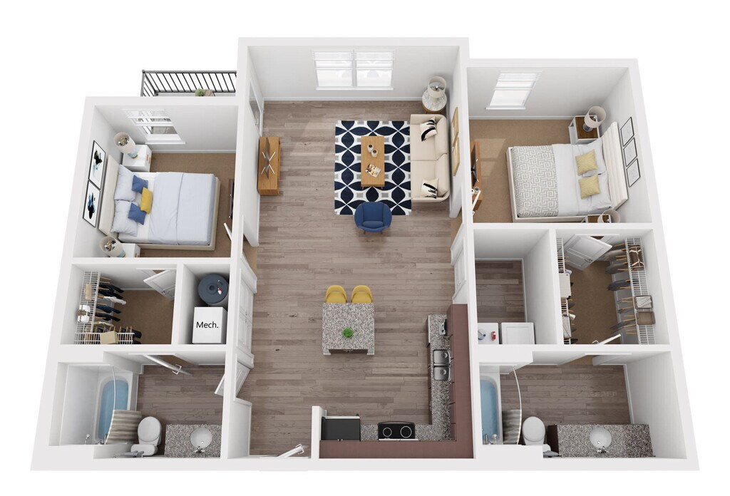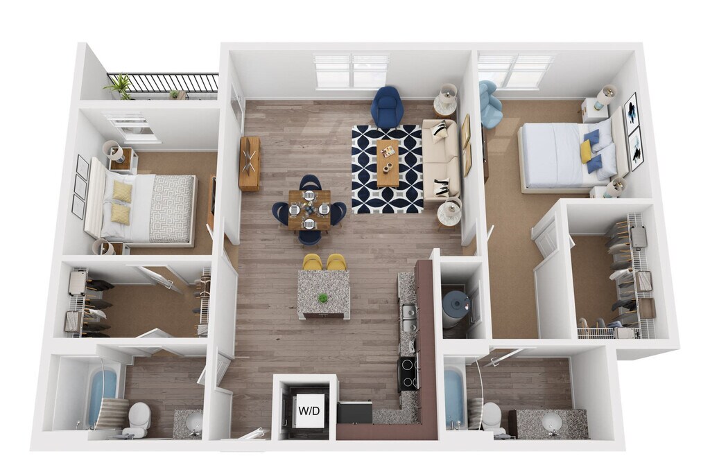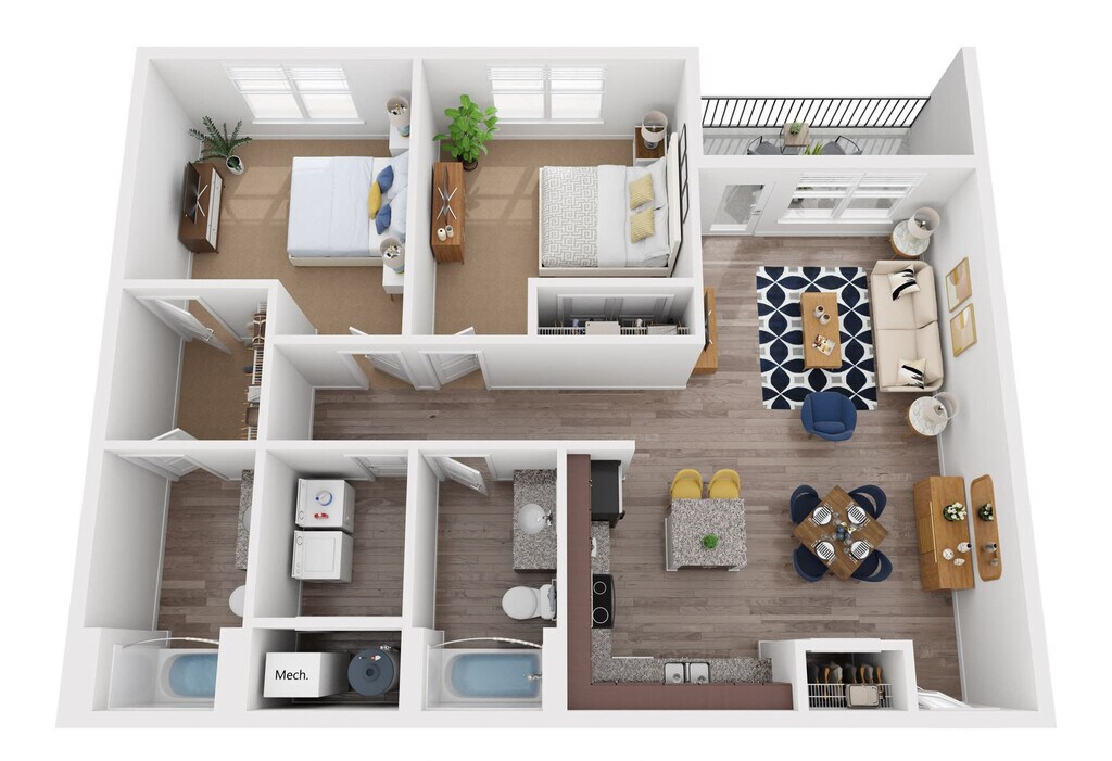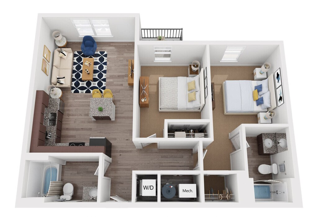 2 Dormitorios, 2 Baños, 1075 pies²Disponible AhoraGalería del Modelo
