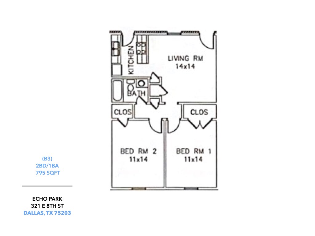 Modelo de apartamento: B3-ECHO2 Dormitorios, 1 Baño, 795 sq ftNo Disponible![]()