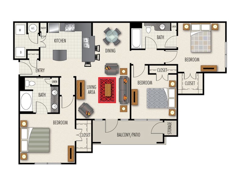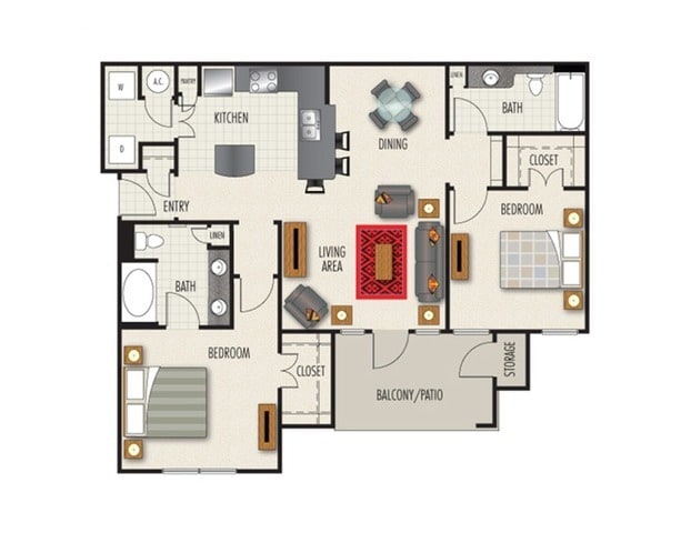 Modelo de apartamento: A2BDesde $1,5551 Dormitorio, 1 Baño, 752 sq ftDisponible Ahora![]()