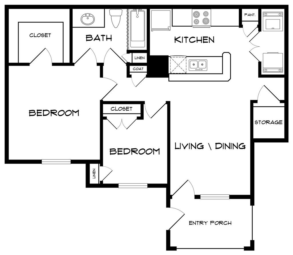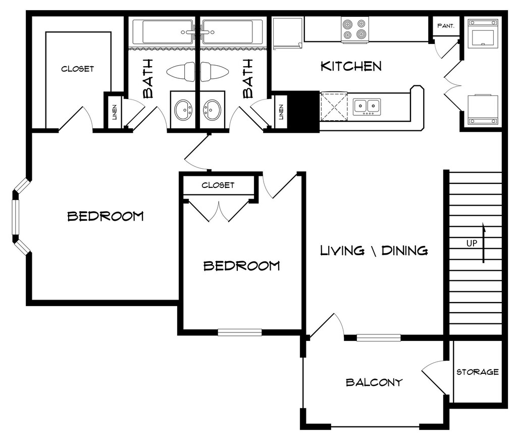 2 Dormitorios, 1 Baño, 990 pies²Disponible AhoraGalería del Modelo