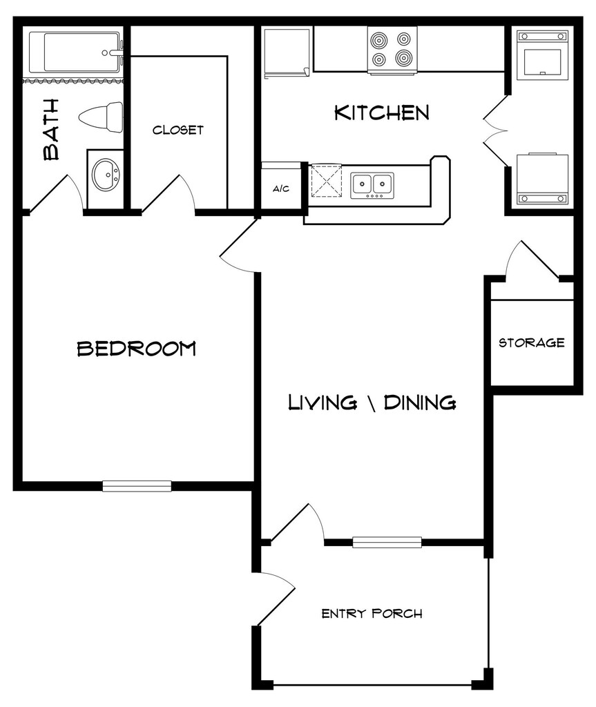 Modelo de apartamento: A1Desde $9491 Dormitorio, 1 Baño, 770 sq ftDisponible AhoraPlanosFotos![]()