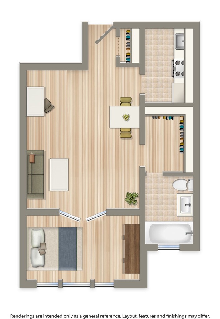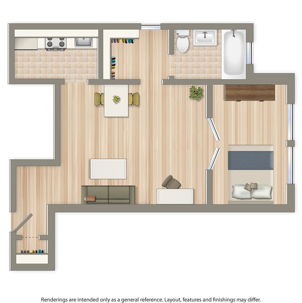 1 Dormitorio, 1 Baño, 641 pies²Disponible AhoraGalería del Modelo