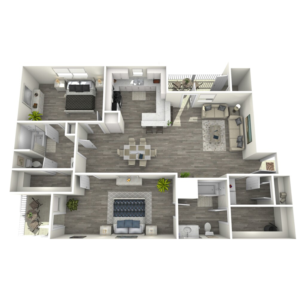 Modelo de apartamento: A1Desde $9731 Dormitorio, 1 Baño, 700 sq ftDisponible Ahora![]()