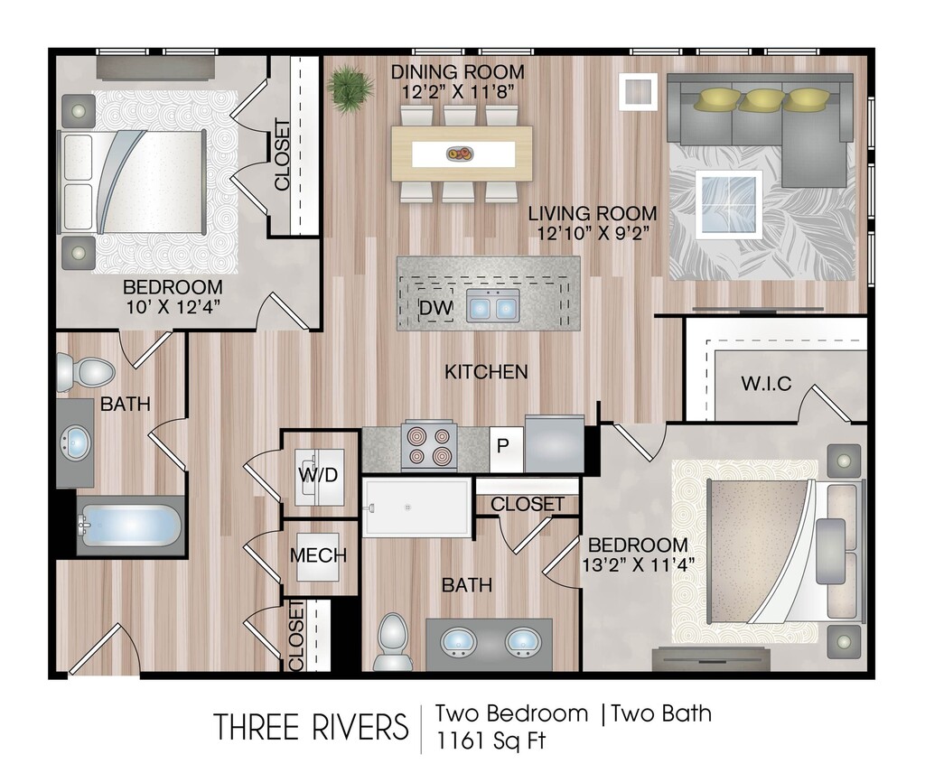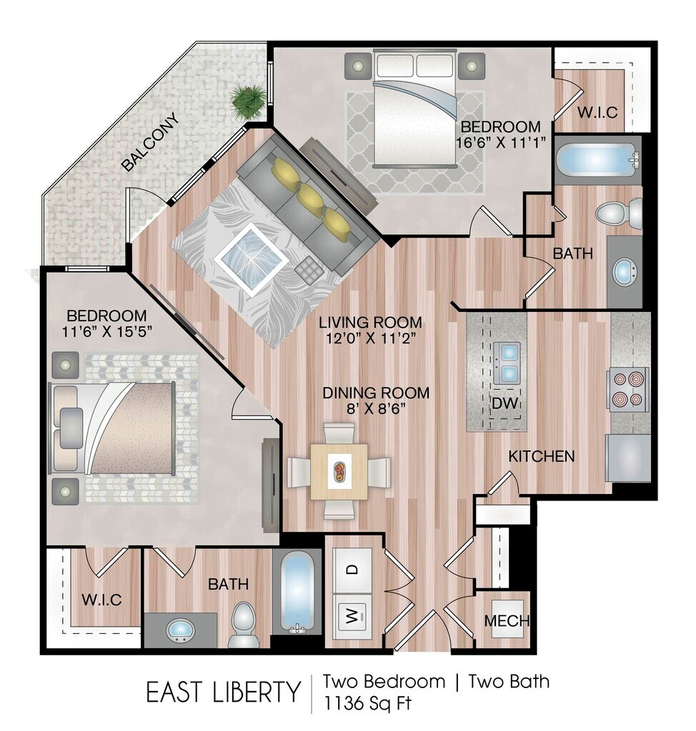 1 Dormitorio, 1 Baño, 744 pies²Disponible AhoraGalería del Modelo