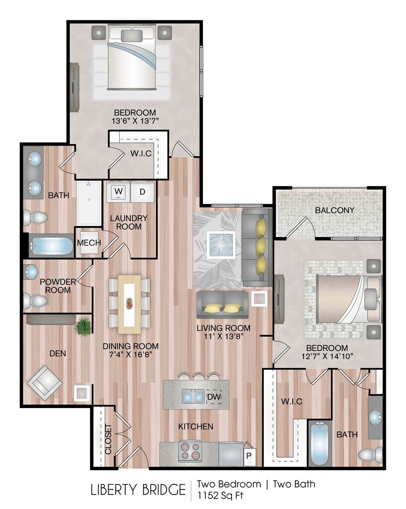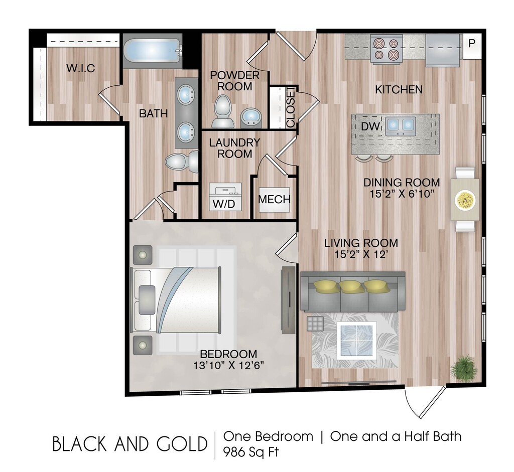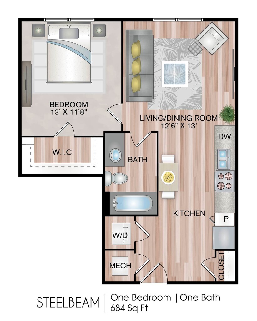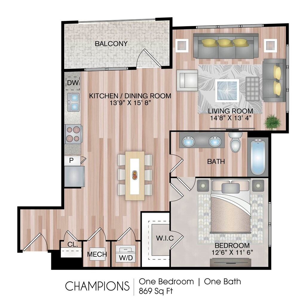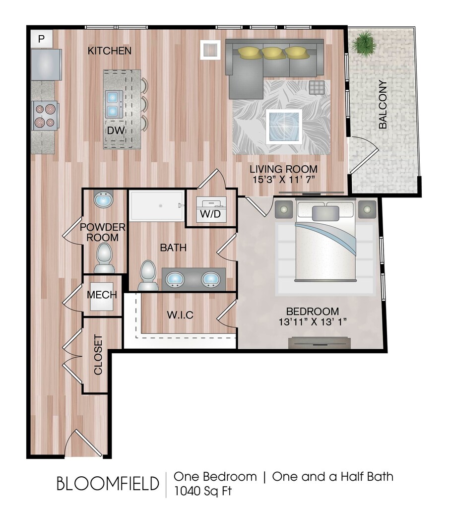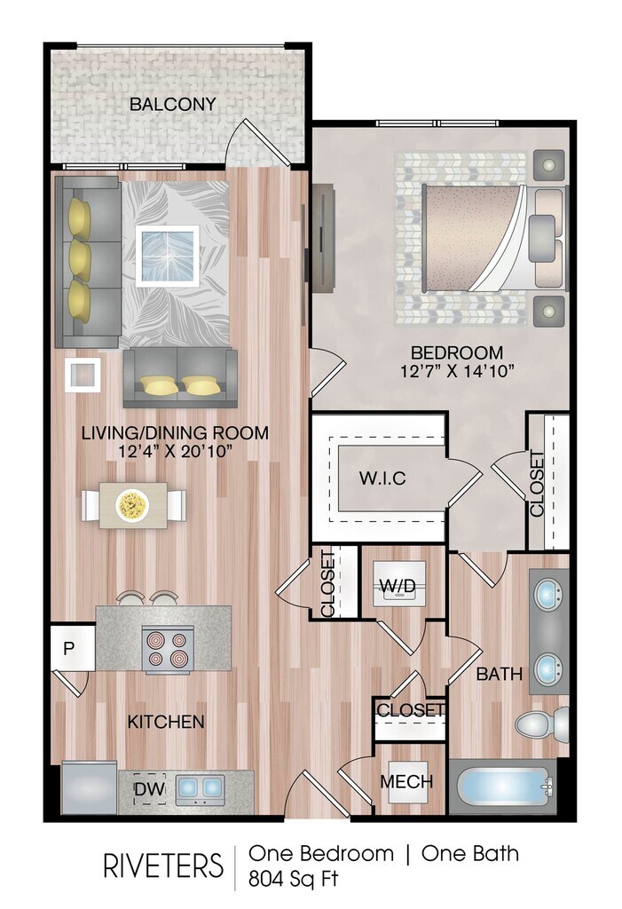 1 Dormitorio, 1 Baño, 804-859 pies²Disponible AhoraGalería del Modelo
