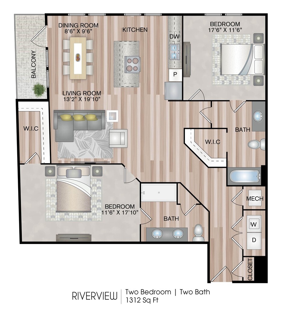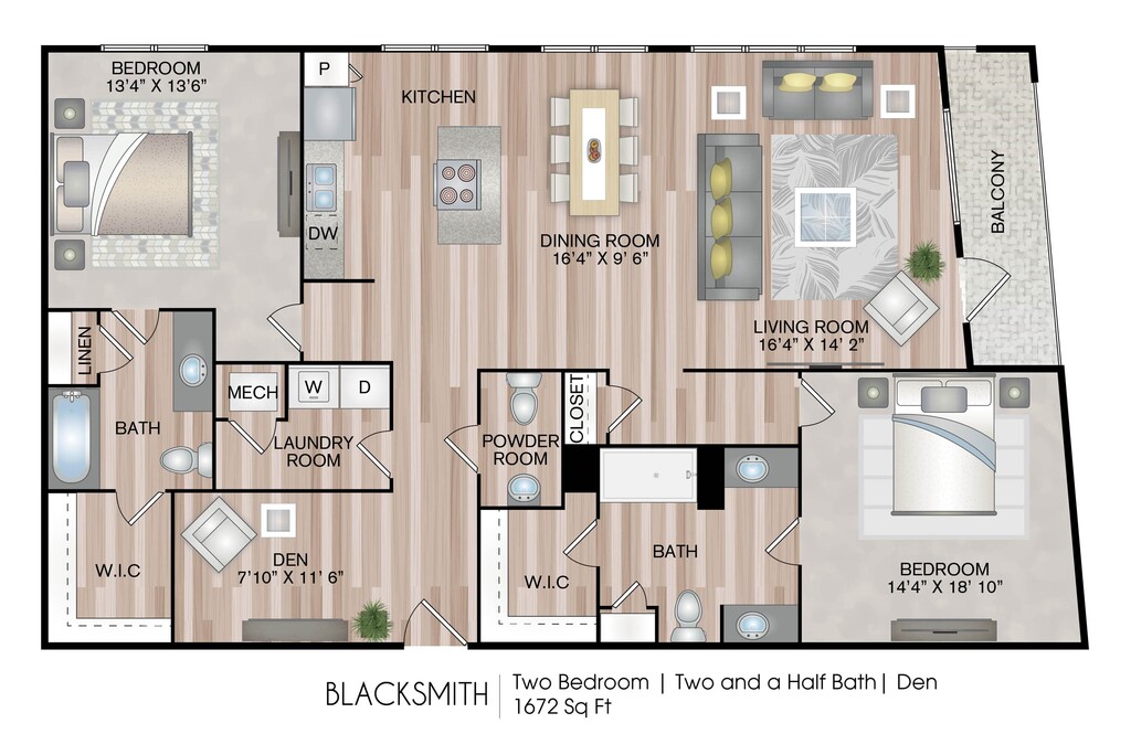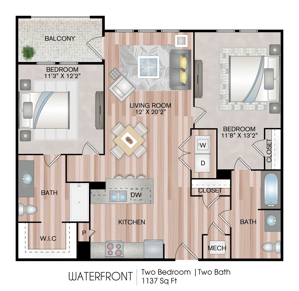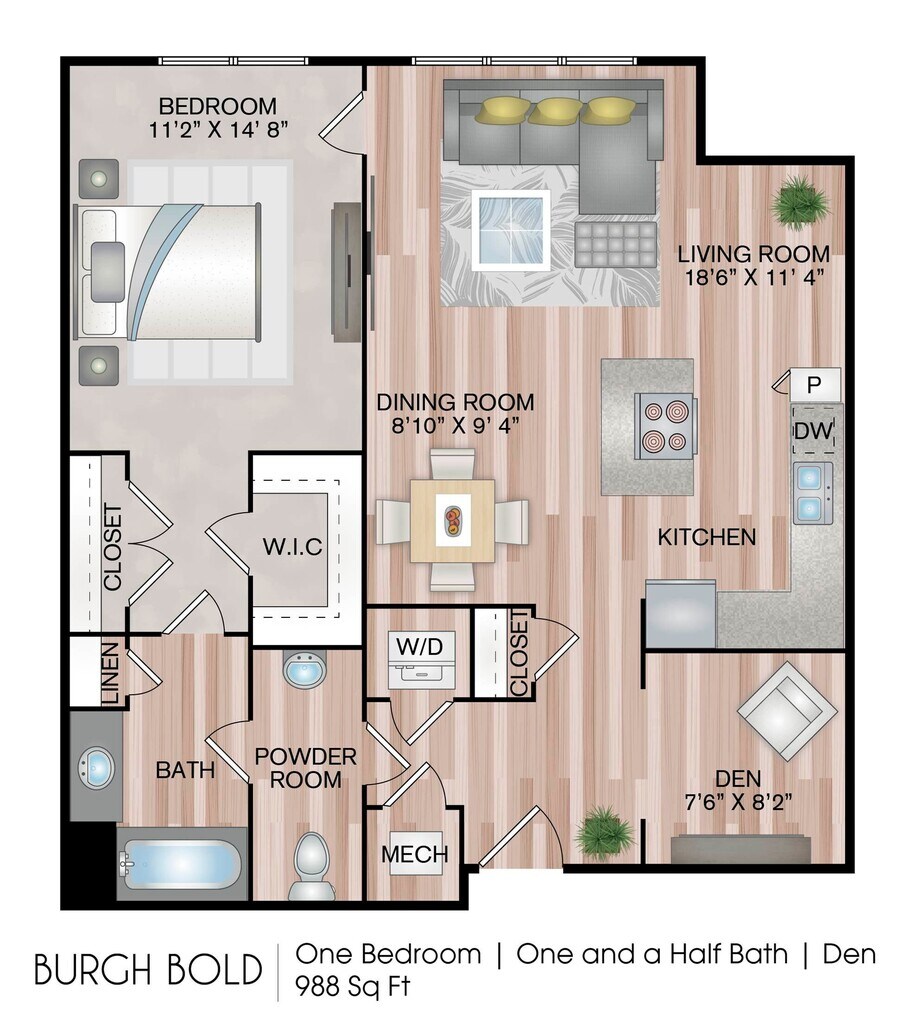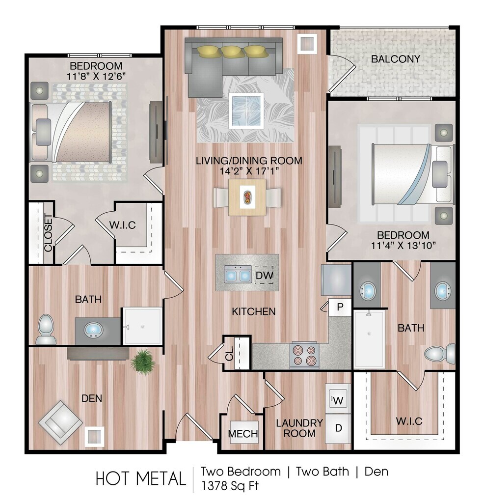 1 Dormitorio, 1 Baño, 804-859 pies²Disponible AhoraGalería del Modelo