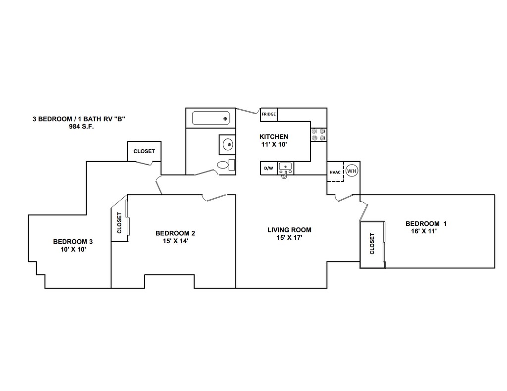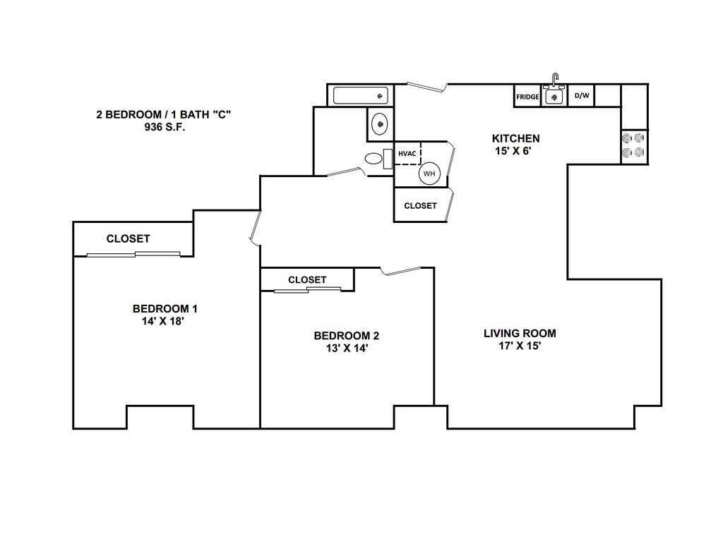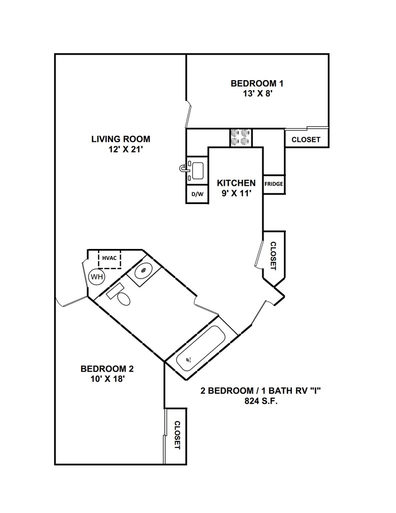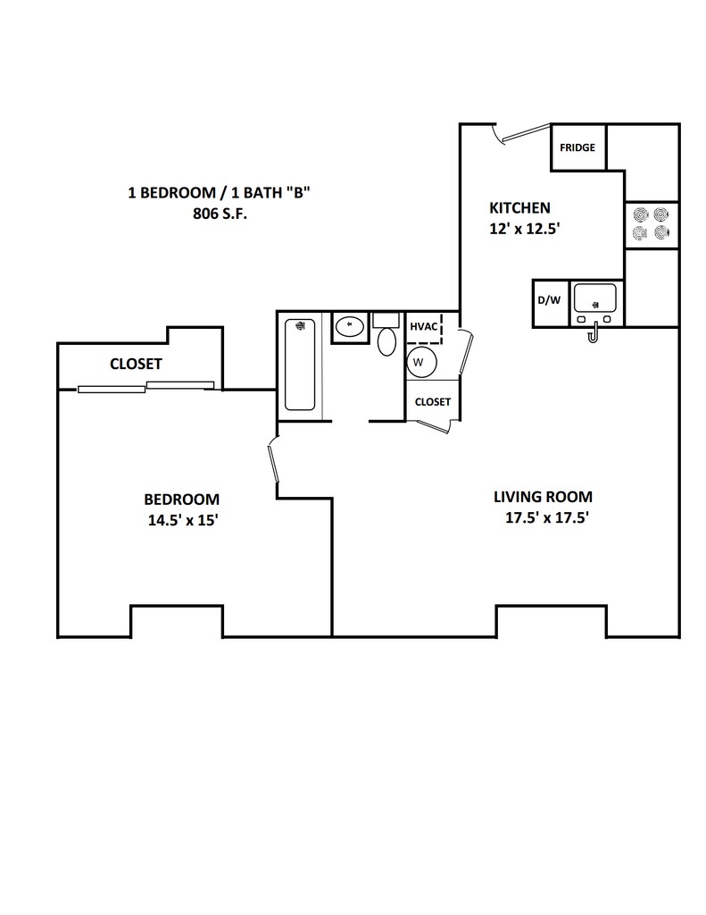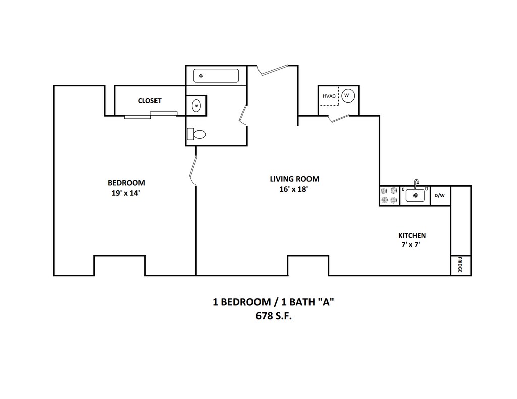 1 Dormitorio, 1 Baño, 600 pies²Galería del Modelo