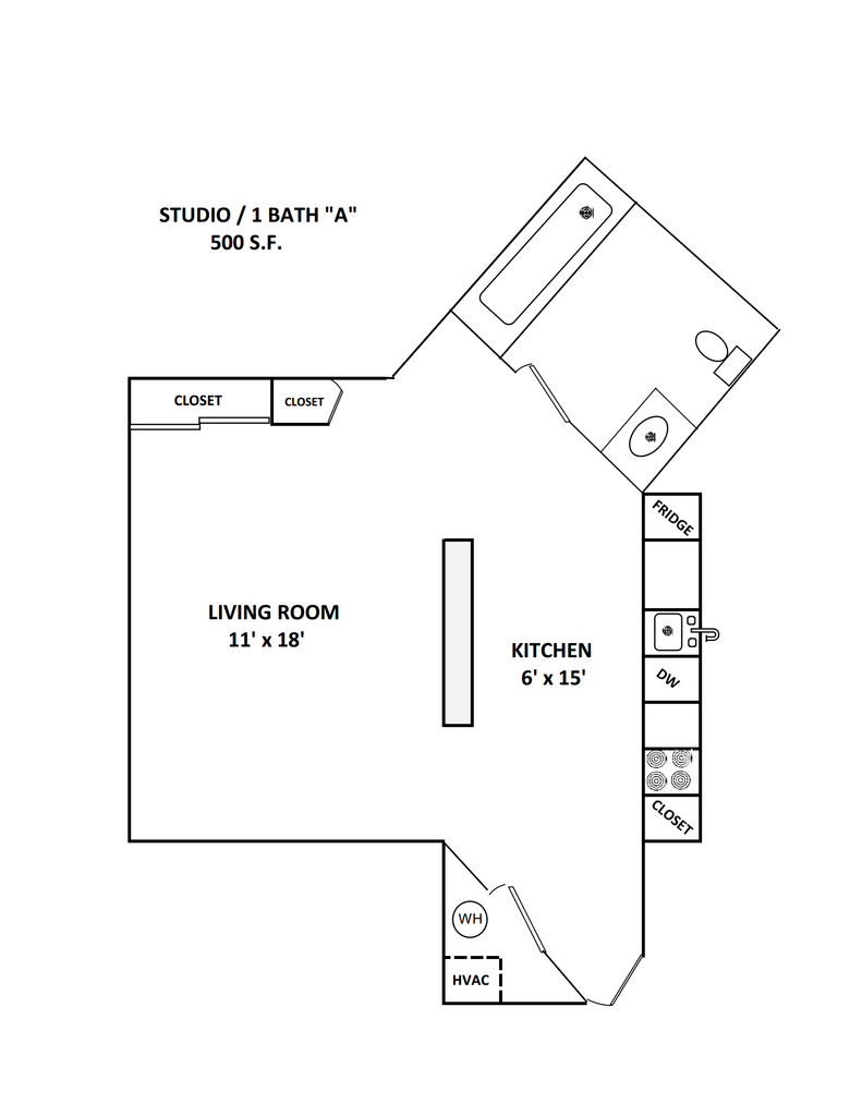 Modelo de apartamento: Studio/1 Bath A$900Estudio, 1 Baño, 520 sq ftDisponible Ahora![]()