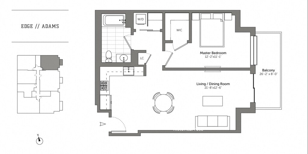 1 Bed/1 Bath-A4 Adams - Plano 7 Unidad de apartamento: A-305Modelo de apartamento: 1 Bed/1 Bath-A4 Adams$3,6501 Dormitorio, 1 Baño, 789 sq ftDisponible April 7, 20262 Dormitorios
