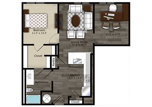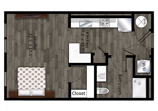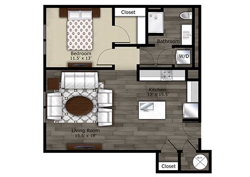 Modelo de apartamento: E1Desde $1,376Estudio, 1 Baño, 540 sq ftDisponible Ahora![]()