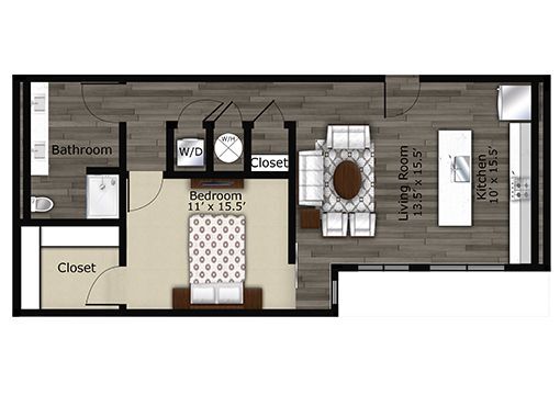 Estudio, 1 Baño, 540 pies²Disponible AhoraGalería del Modelo