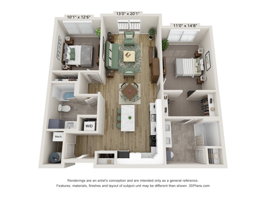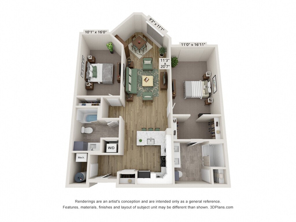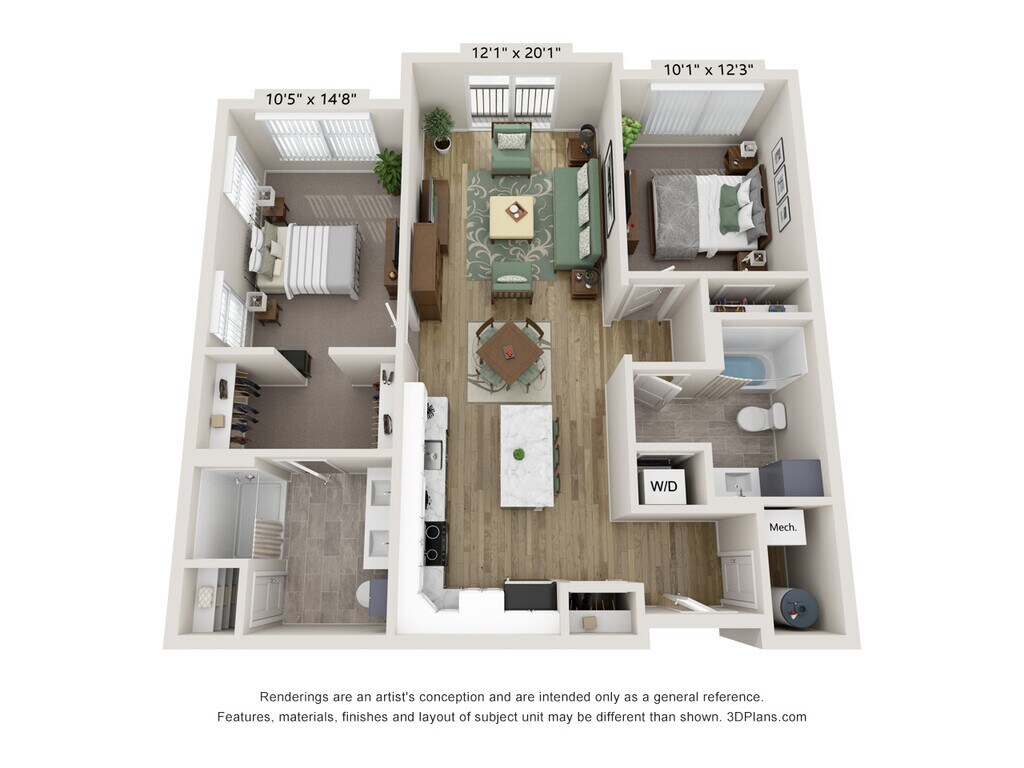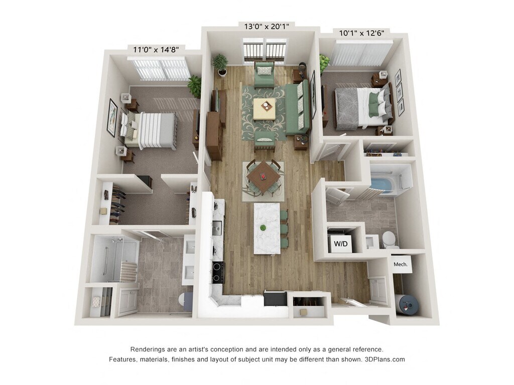 Modelo de apartamento: A1Desde $2,2001 Dormitorio, 1 Baño, 735 sq ftDisponible December 15, 2025![]()