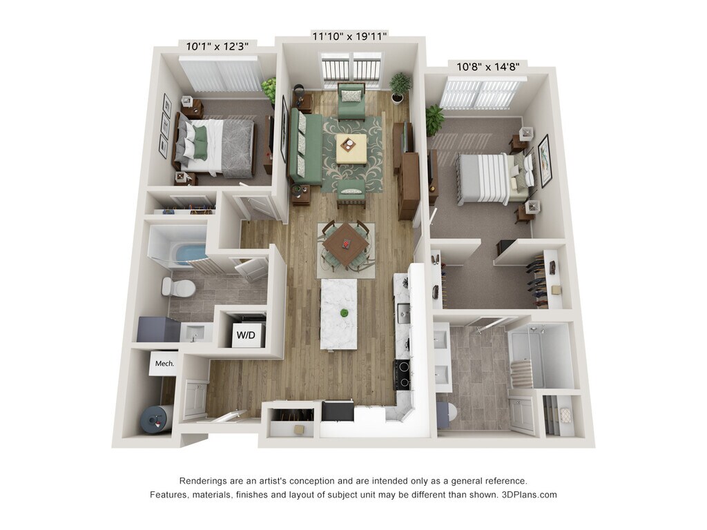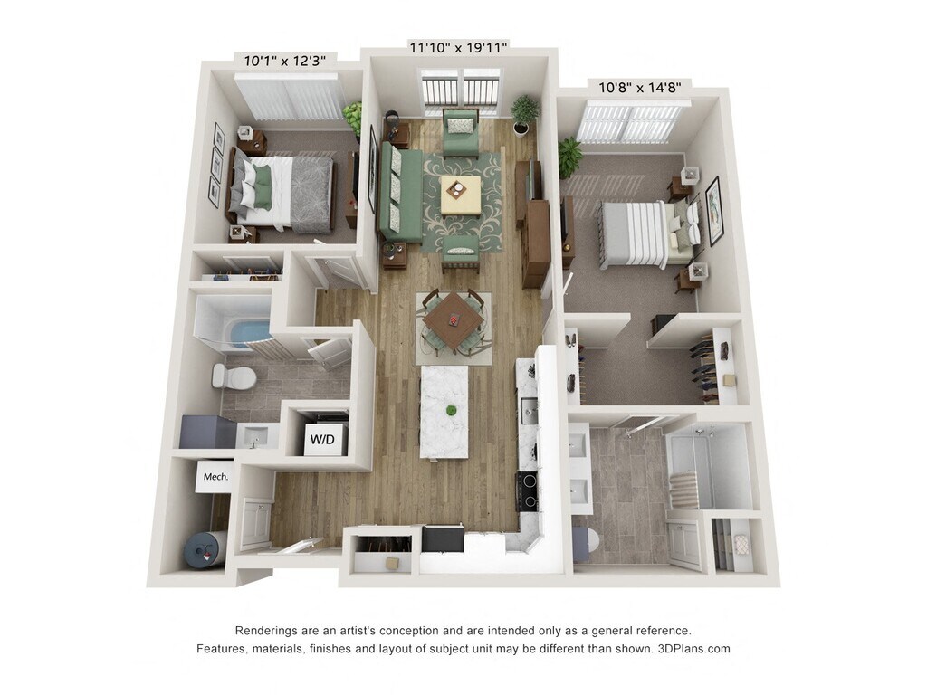 Modelo de apartamento: A2Desde $2,2551 Dormitorio, 1 Baño, 815 sq ftDisponible December 11, 2025![]()