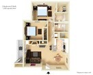1 Dormitorio, 1 Baño, 750 pies²Galería del Modelo
