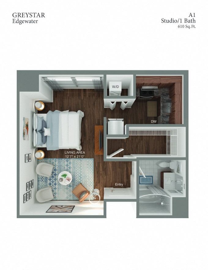 Studio A1 - Plano 1 Unidad de apartamento: 711Modelo de apartamento: Studio A1$1,518Estudio, 1 Baño, 438 sq ftDisponible AhoraA1 Studio 1 Bath