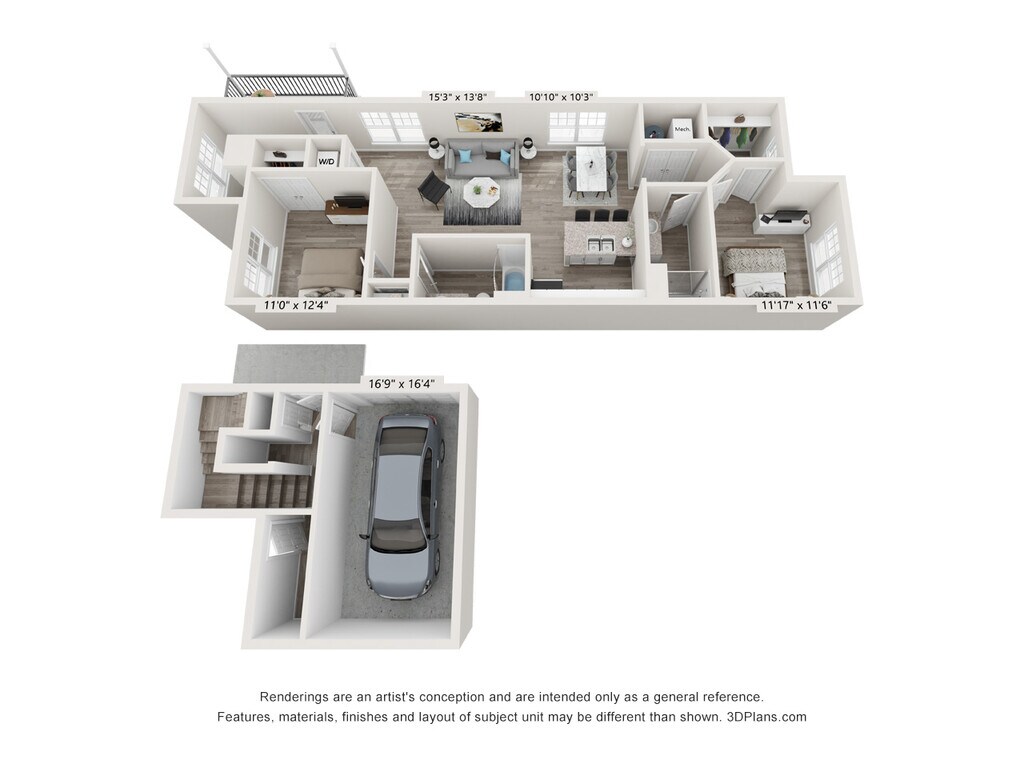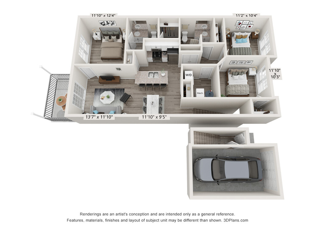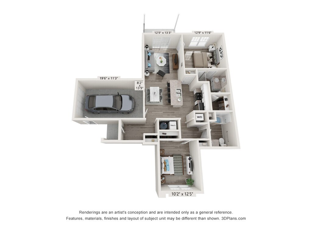 Unidad de apartamento: 208Modelo de apartamento: Unit D$2,3463 Dormitorios, 2 Baños, 1268 sq ftDisponible Ahora