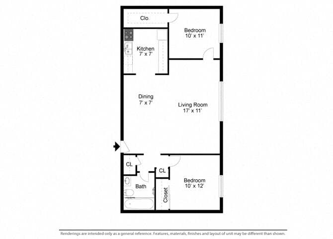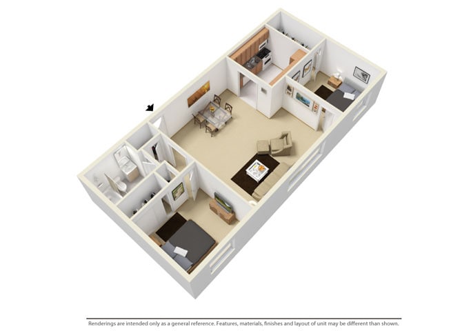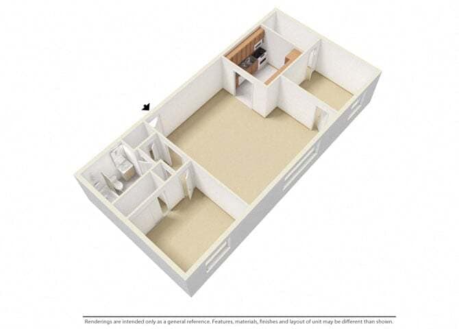 2 Dormitorios, 1 Baño, 750 pies²Disponible February 14, 2026Galería del Modelo