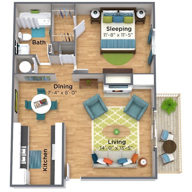 Estudio, 1 Baño, 525 pies²Disponible AhoraGalería del Modelo
