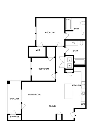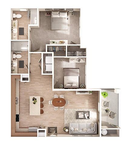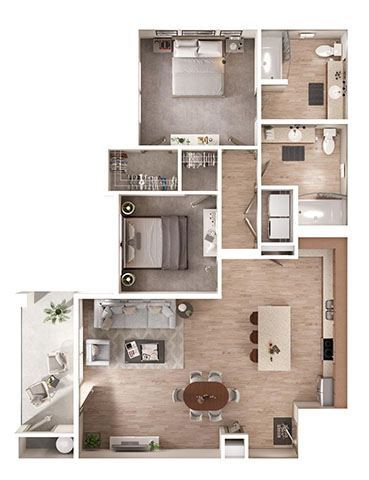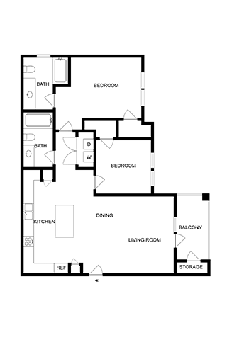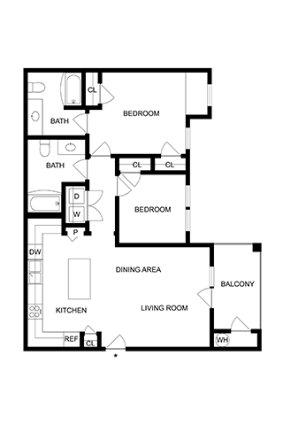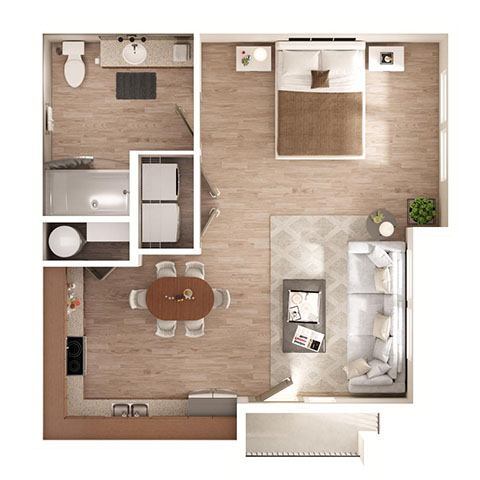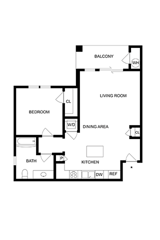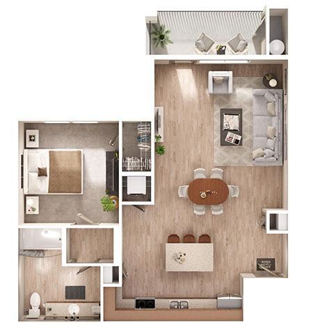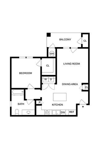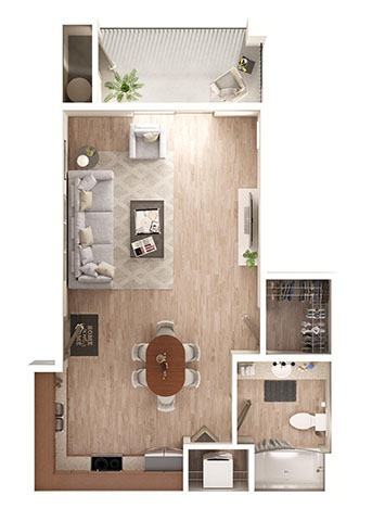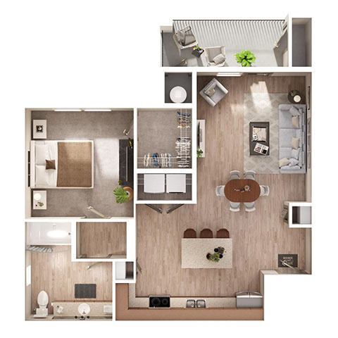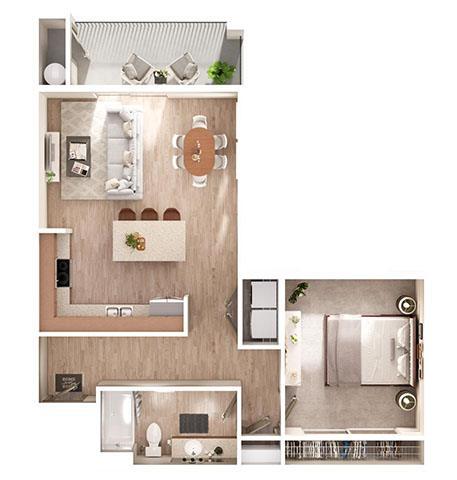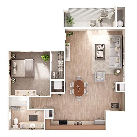 Modelo de apartamento: ADesde $1,6751 Dormitorio, 1 Baño, 750 sq ftDisponible Ahora![]()