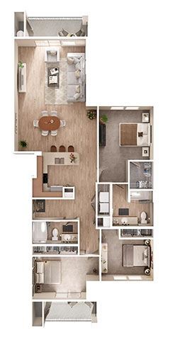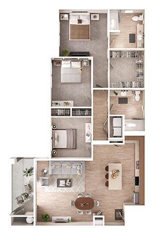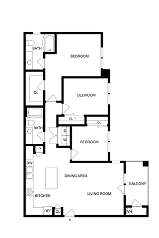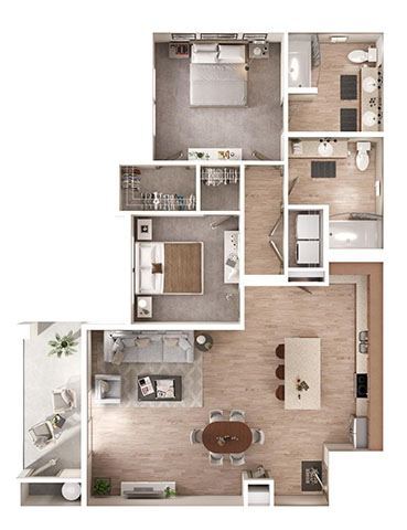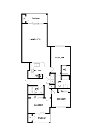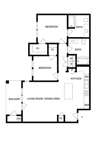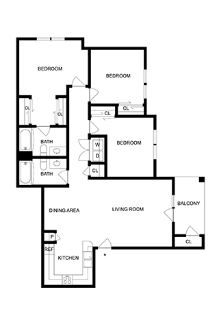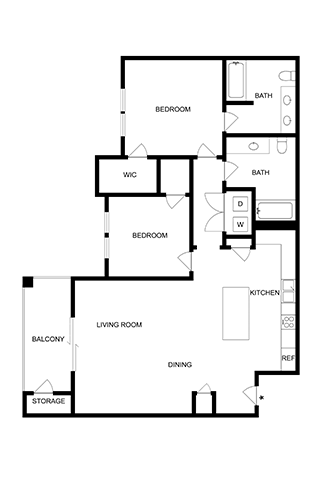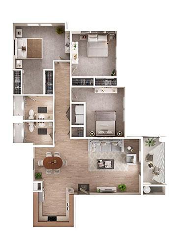 Modelo de apartamento: A3Llame para Precios1 Dormitorio, 1 Baño, 760 sq ftNo Disponible![]()