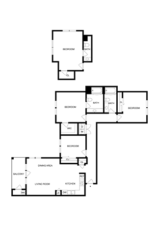 Modelo de apartamento: A4Llame para Precios1 Dormitorio, 1 Baño, 838 sq ftNo Disponible![]()