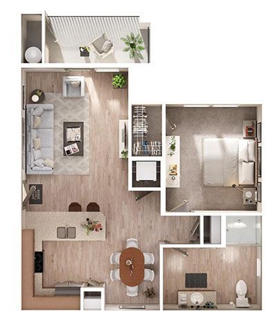 1 Dormitorio, 1 Baño, 750 pies²Disponible AhoraGalería del Modelo