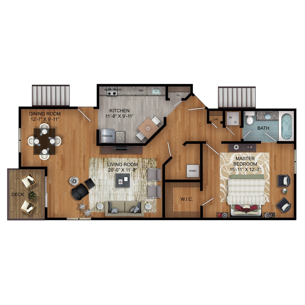 Modelo de apartamento: 1 Bedroom Dining Room$2,0251 Dormitorio, 1 Baño, 940 sq ftDisponible AhoraPlanosFotos![]()
