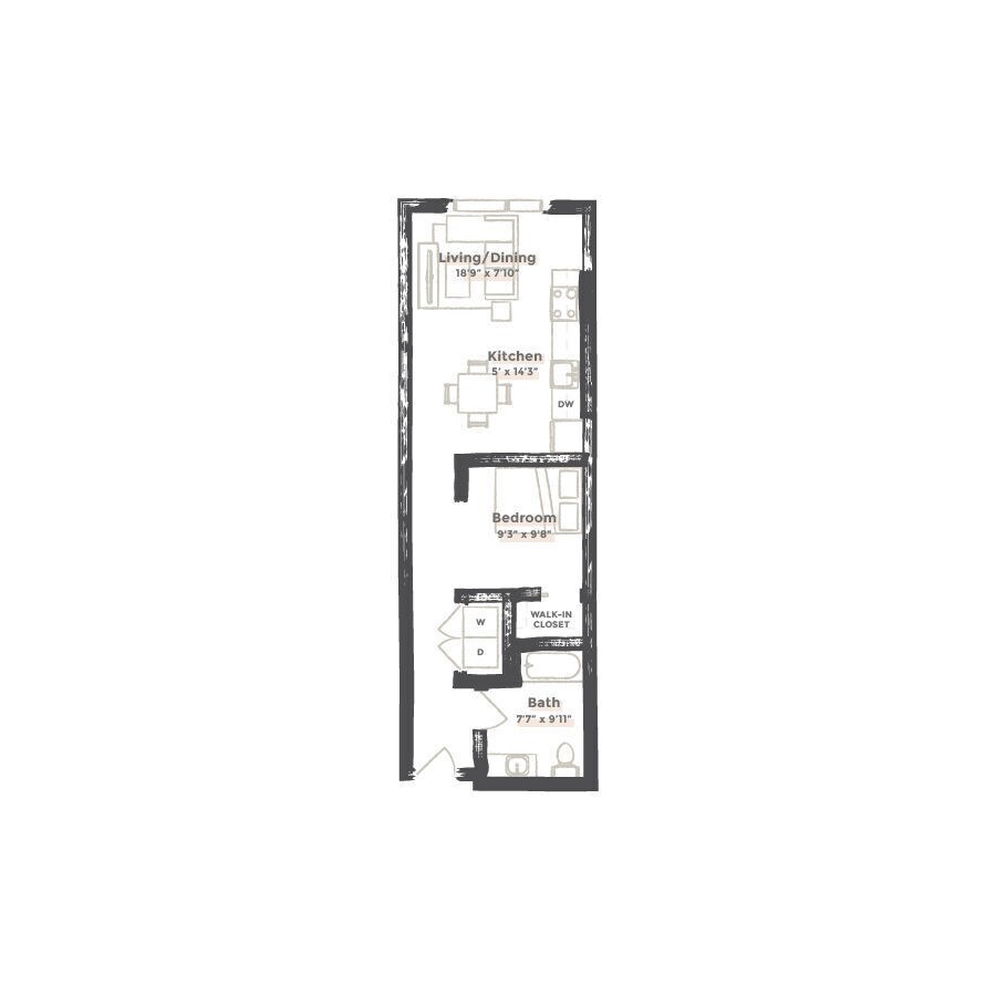 Estudio, 1 Baño, 424 pies²Precio Mensual TotalDisponible AhoraGalería del Modelo