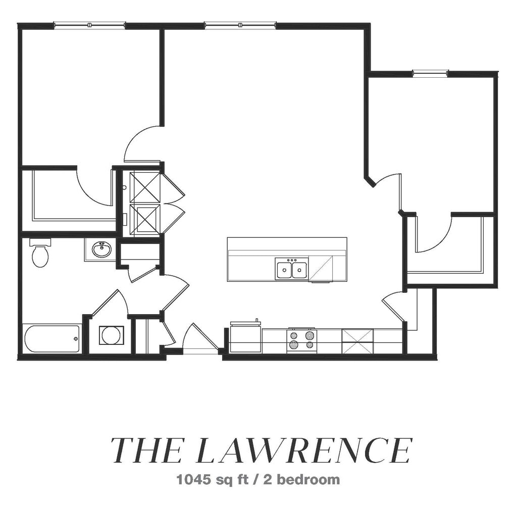 Lawrence 60% - Plano 1 Unidad de apartamento: 1-104Modelo de apartamento: Lawrence 60%$1,2132 Dormitorios, 1 Baño, 1045 sq ftDisponible AhoraLawrence 30%