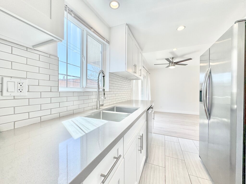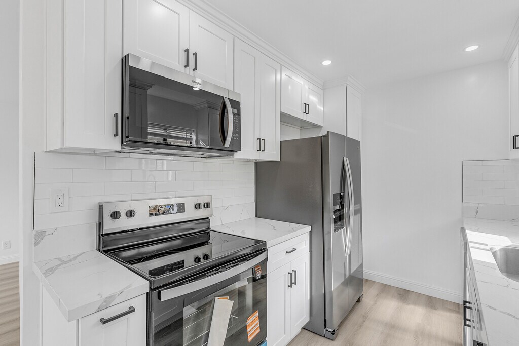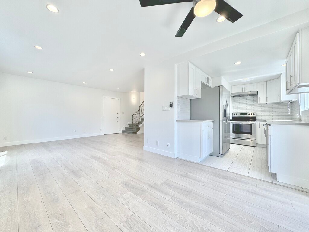 Beautiful newly remodeled modern two-story townhome top floor spacious 2 Bedroom + 1.5 Bath located in lovely quiet Beverly Hills adjacent neighborhood. Unit is 2 stories. Spacious airy unit with plenty of natural light. Unit features new flooring throughout entire apartment, Air-Conditioned, newly remodeled kitchen with modern quartz countertops, all stainless-steel appliances including large stainless-steel fridge and stainless-steel stove/oven and stainless-steel dishwasher. Large stainless-steel deep double-sink, new modern tile flooring from Italy and Spain, Recessed lighting throughout unit, Open dining area and living room area. New double-paned large windows, large private balconies on both floors w/ glass sliding doors, all new remodeled bathrooms, large double sink floating modern vanities, new full shower tiling from Italy, large closets and lots of closet/pantry/cabinet space throughout unit, and much more. Unit comes with covered parking in building. Prime location, minutes away from famous Rodeo Drive strip, Beverly Drive, WeHo, close to many restaurants, entertainment, Century City, and more. Quiet building. . For any questions, viewings, or info please text or call Anthony 213*618*9939 .