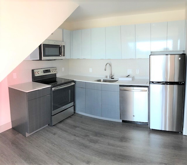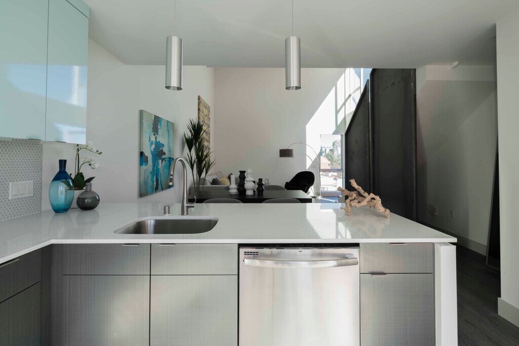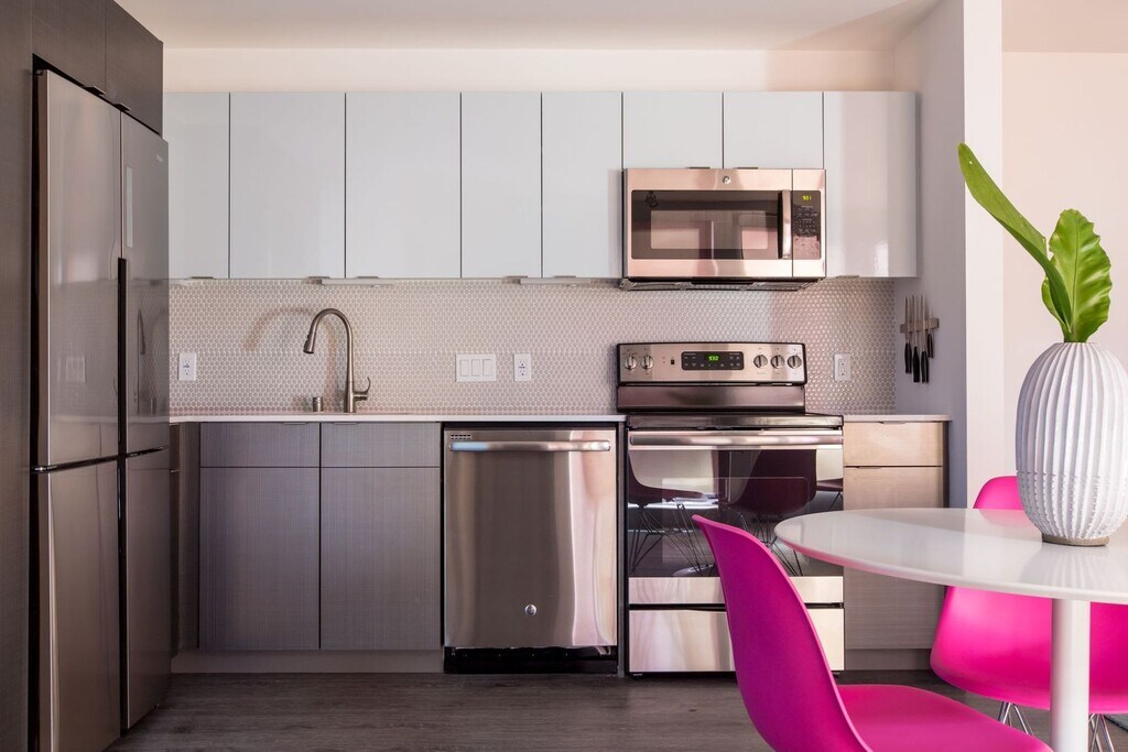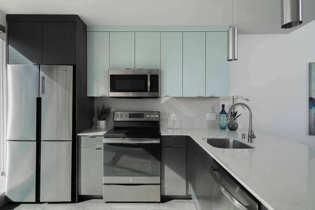 - Microondas Lavadora/secadora apilable Lavavajillas Fregadero de cocina Triturador de basura Placa de cocción/horno Refrigerador
