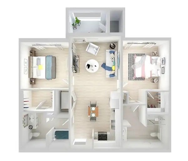 2 Dormitorios, 2 Baños, 965 pies²Galería del Modelo