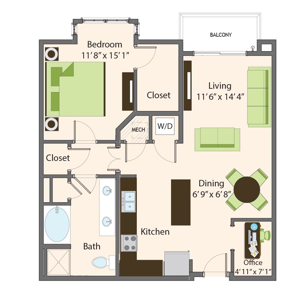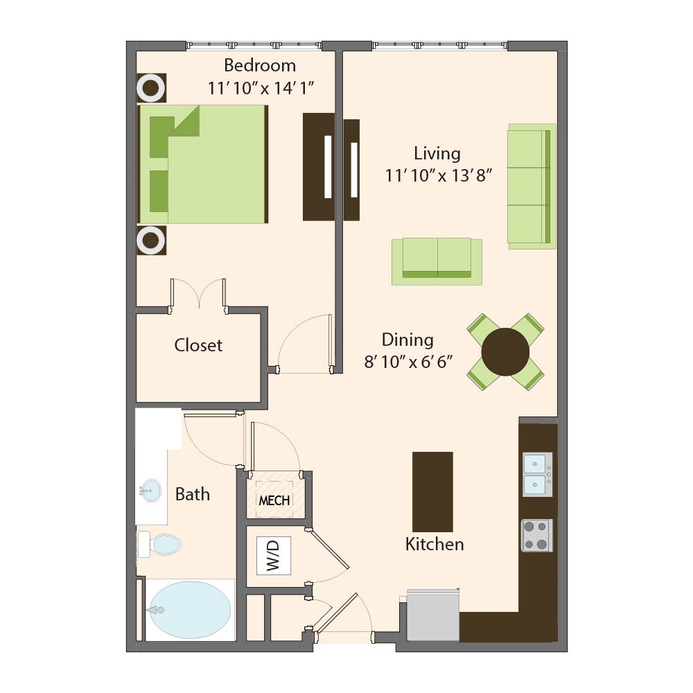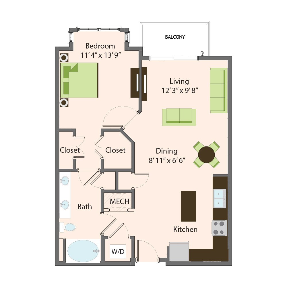 1 Dormitorio, 1 Baño, 950 pies²Disponible AhoraEl más grandeEsta opción tiene las unidades más grandes para este modeloGalería del Modelo