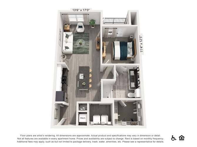 Modelo de apartamento: A1Desde $1,6361 Dormitorio, 1 Baño, 620 sq ftDisponible AhoraLos planos son representaciones artísticas. Todas las dimensiones son aproximadas. El producto y las especificaciones reales pueden variar en tamaño o detalle. No todas las características están disponibles en cada vivienda en alquiler. Por favor, consulta con un representante para obtener más detalles.