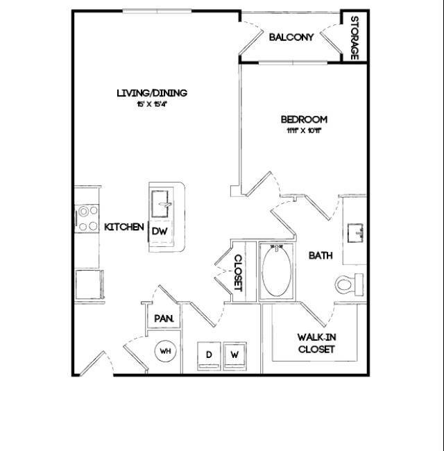 Modelo de apartamento: A1A$1,1751 Dormitorio, 1 Baño, 630 sq ftDisponible AhoraLos planos de la planta son una interpretación artística. Todas las dimensiones son aproximadas. Los tamaños o el detalle del producto real y sus especificaciones pueden variar. No todas las características están disponibles en todos los hogares para rentar. Los precios y la disponibilidad están sujetos a cambios. El alquiler que se muestra es mensual. Se pueden aplicar ciertos cargos, por ejemplo, entrega de paquetes, recolección de basura, agua, servicios, etc. Depositos varian. Consulta a un representante para conocer detalles.