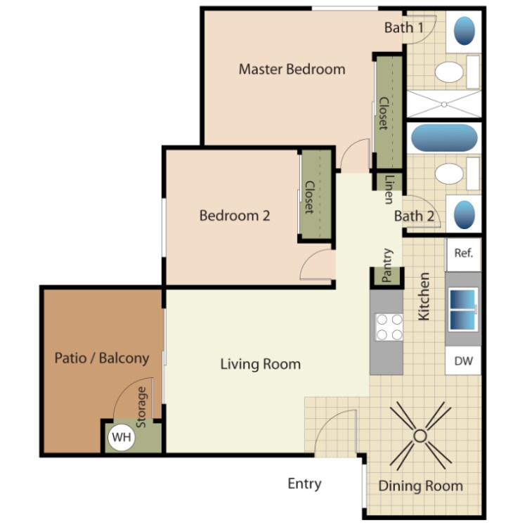 2 Dormitorios, 2 Baños, 875 pies²Disponible AhoraEl más grandeEsta opción tiene las unidades más grandes para este modeloGalería del Modelo