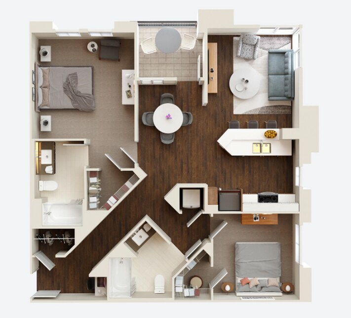 Modelo de apartamento: B1Desde $2,8472 Dormitorios, 2 Baños, 1045-1058 sq ftDisponible January 21, 2026Los planos de la planta son una interpretación artística. Todas las dimensiones son aproximadas. Los tamaños o el detalle del producto real y sus especificaciones pueden variar. No todas las características están disponibles en todos los hogares para rentar. Los precios y la disponibilidad están sujetos a cambios. El alquiler que se muestra es mensual. Se pueden aplicar ciertos cargos, por ejemplo, entrega de paquetes, recolección de basura, agua, servicios, etc. Depositos varian. Consulta a un representante para conocer detalles.