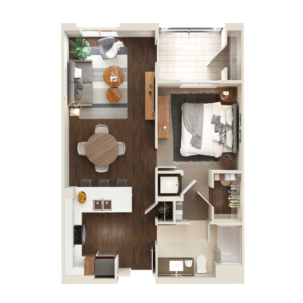 1 Dormitorio, 1 Baño, 729-793 pies²Galería del Modelo