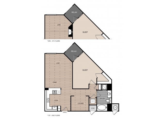 Modelo de apartamento: 1 Bedrm 1 Bath 775Desde $2,4281 Dormitorio, 1 Baño, 775 sq ftDisponible Ahora![]()