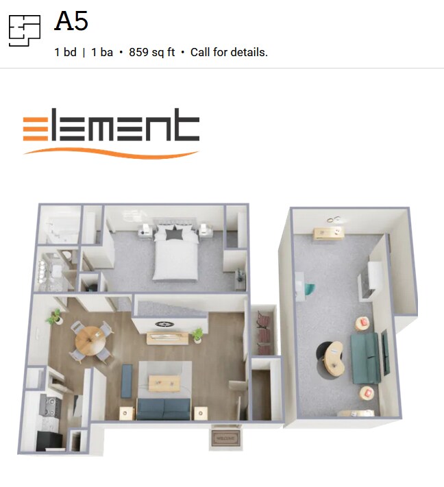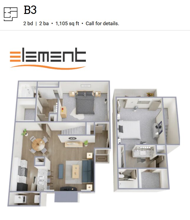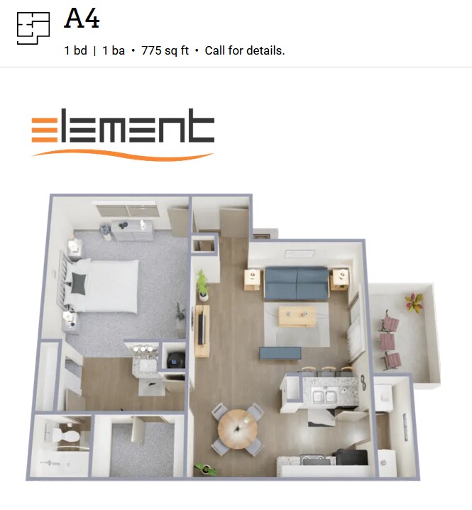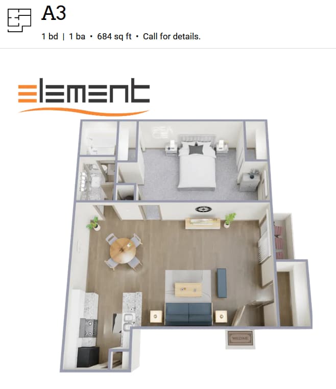Element ofrece apartamentos de 1 a 2 Dormitorios desde $1,012 con 556–1,105 pies cuadrados. Aquí está el precio actual y la disponibilidad: