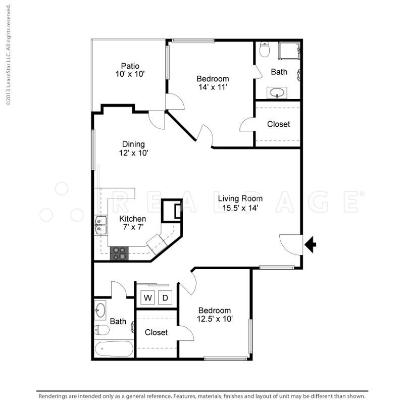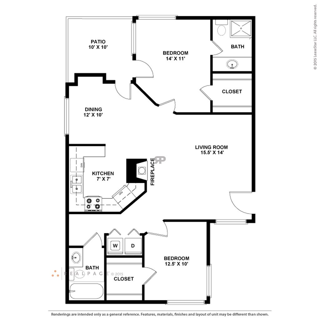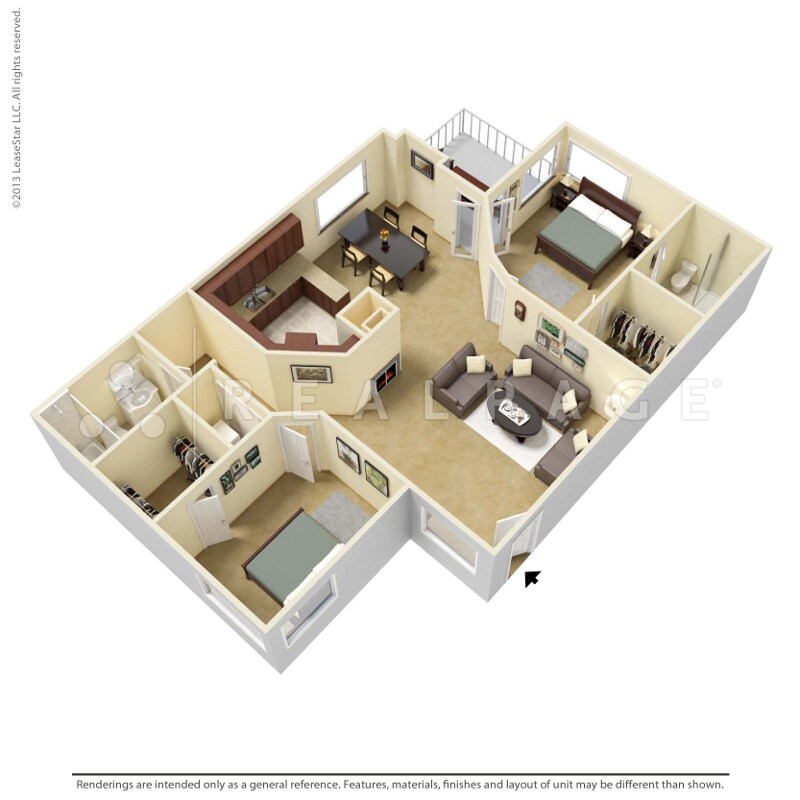 Modelo de apartamento: Cabana2 Dormitorios, 2 Baños, 1195 sq ftDisponible AhoraPlanosFotos![]()