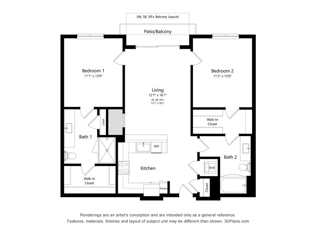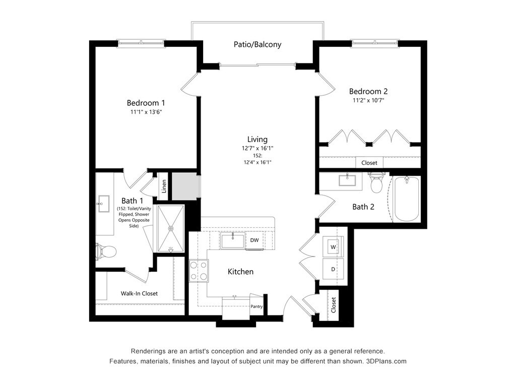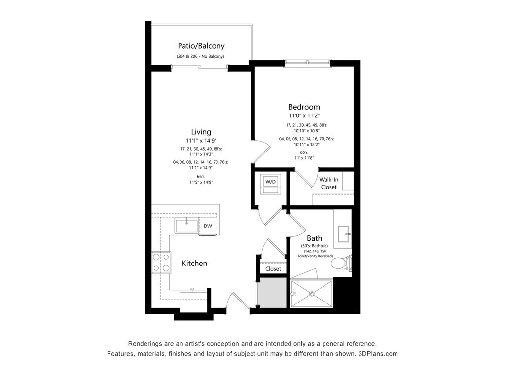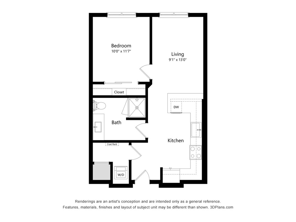 1 Dormitorio, 1 Baño, 594 pies²Disponible AhoraGalería del Modelo
