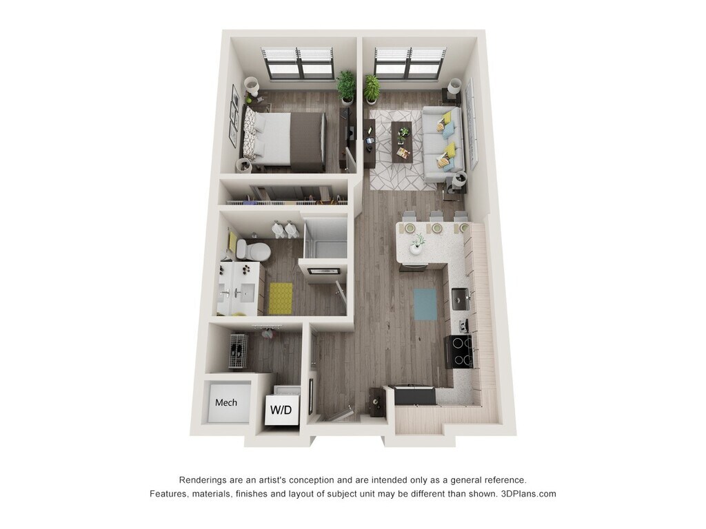 1 Dormitorio, 1 Baño, 707 pies²Disponible AhoraGalería del Modelo