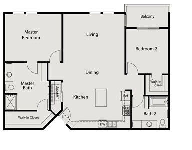 Modelo de apartamento: 2BU$1,9882 Dormitorios, 2 Baños, 1122 sq ftDisponible AhoraLos planos son representaciones artísticas. Todas las dimensiones son aproximadas. El producto y las especificaciones reales pueden variar en tamaño o detalle. No todas las características están disponibles en cada vivienda en alquiler. Por favor, consulta con un representante para obtener más detalles.