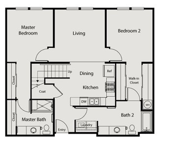 Modelo de apartamento: 2BU$1,7962 Dormitorios, 2 Baños, 1122 sq ftDisponible AhoraLos planos son representaciones artísticas. Todas las dimensiones son aproximadas. El producto y las especificaciones reales pueden variar en tamaño o detalle. No todas las características están disponibles en cada vivienda en alquiler. Por favor, consulta con un representante para obtener más detalles.