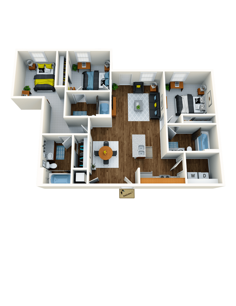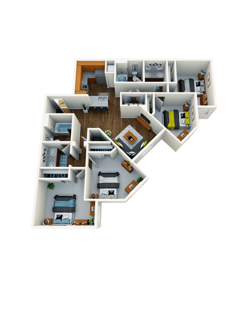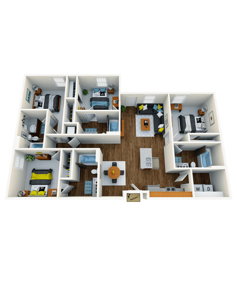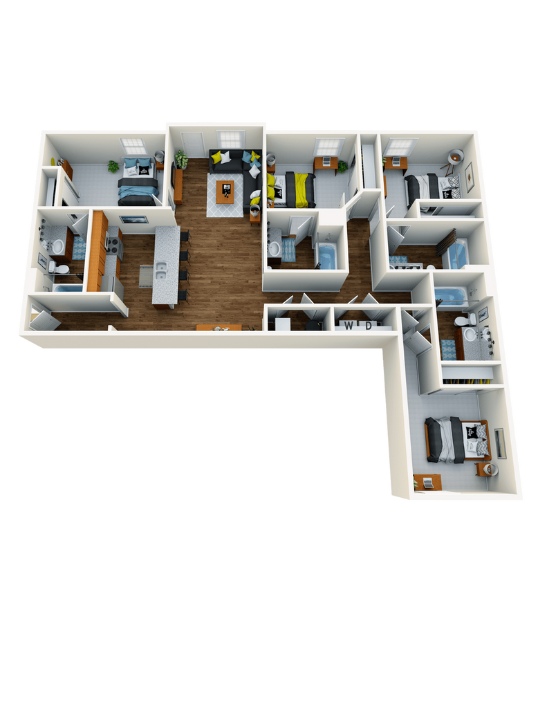 D3 - Plano 1 Unidad de apartamento: PrivateModelo de apartamento: D3$5894 Dormitorios, 4 Baños, 1321 sq ftDisponible Ahora