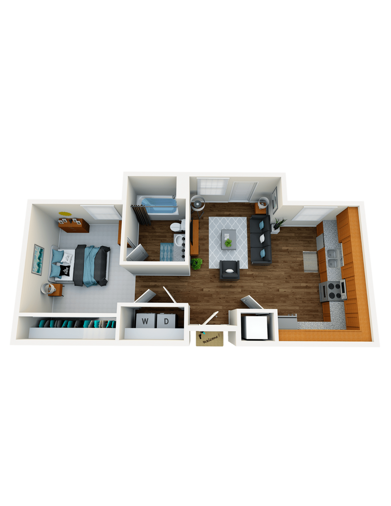 1 Dormitorio, 1 Baño, 518 pies²Disponible AhoraGalería del Modelo